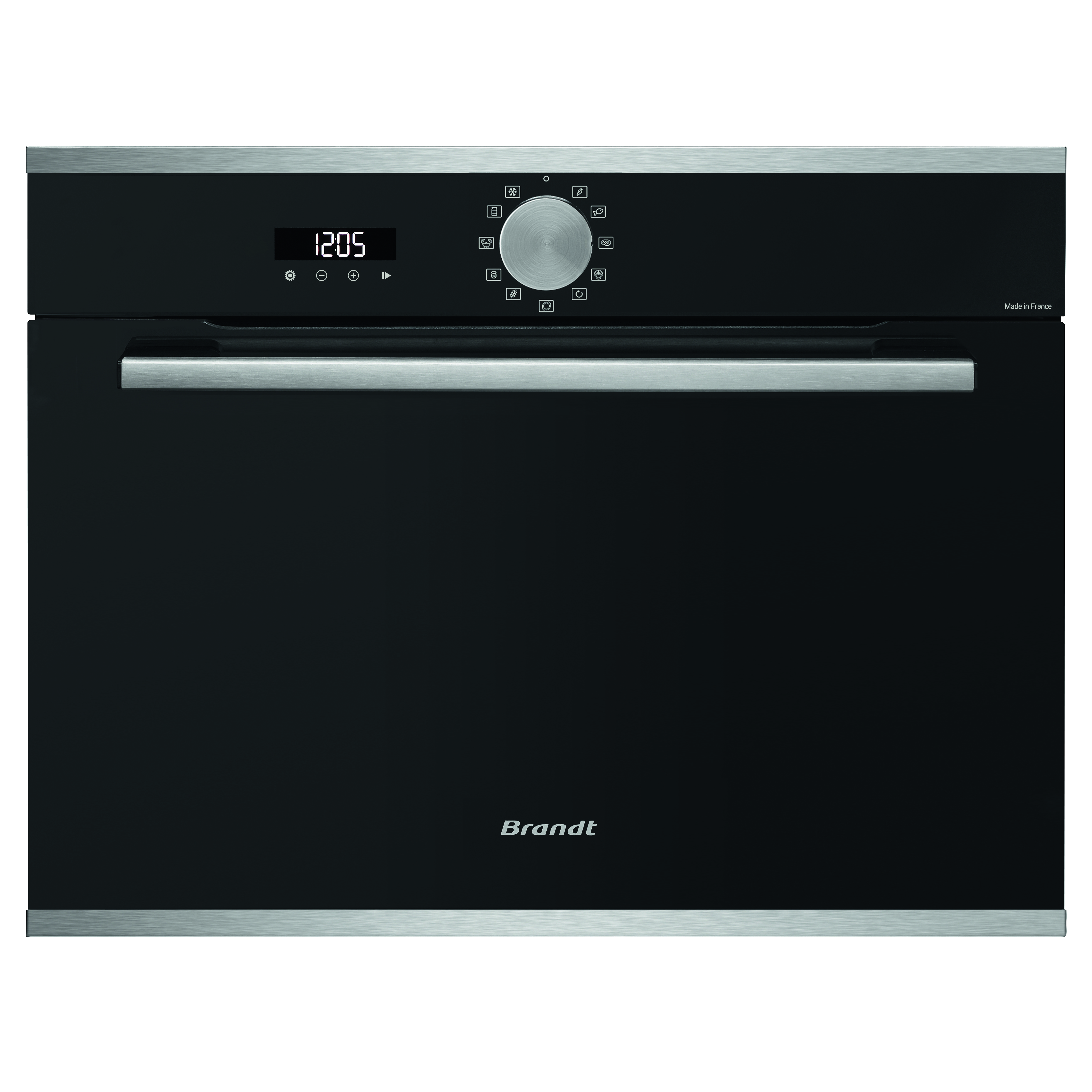 Crafted in black glass with stainless steel trimmings, featuring a ventilated door, 29L stainless steel cavity, and 2 shelf levels for versatile cooking needs.