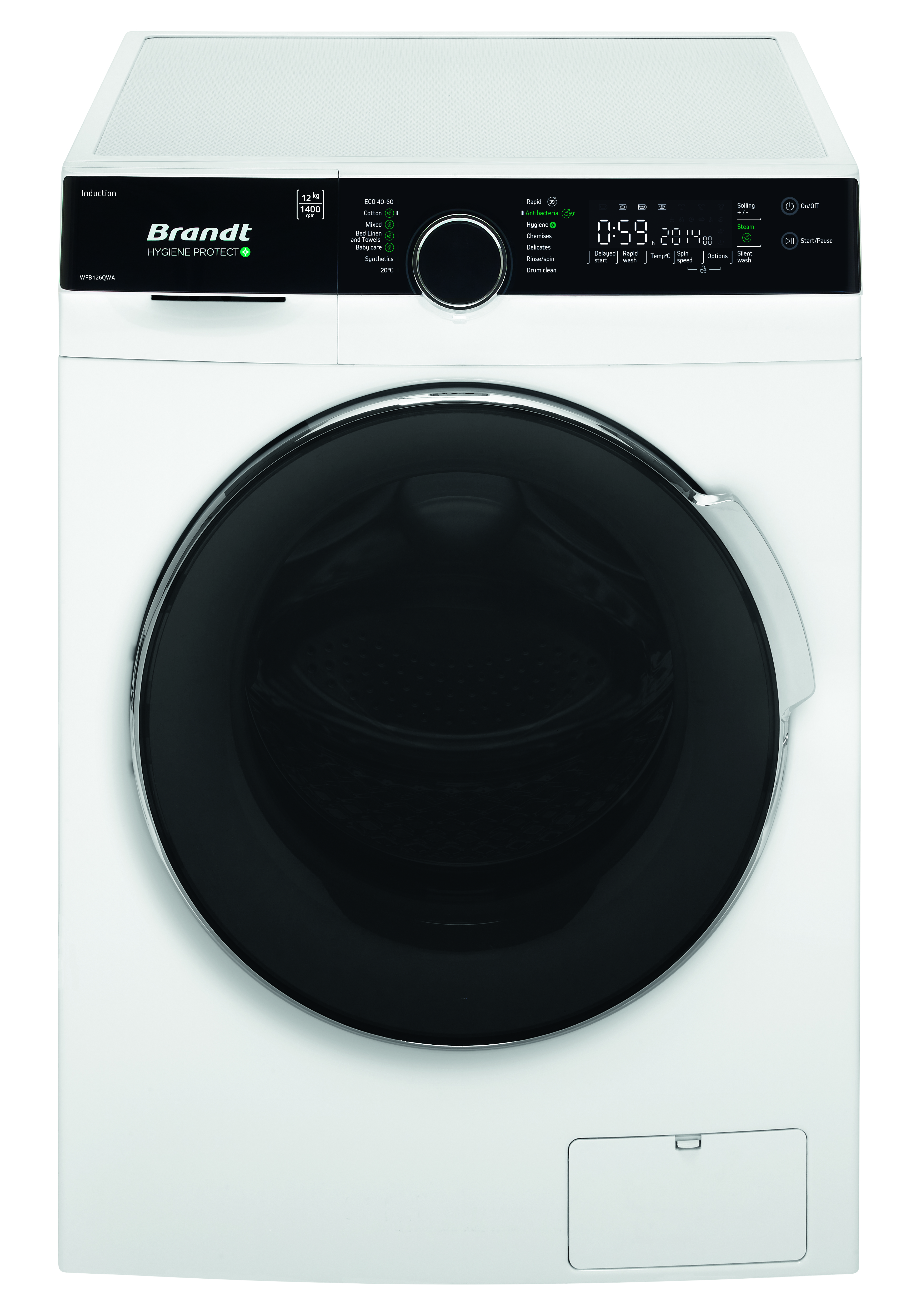The WFB126QWA 12kg Front Load Washing Machine is designed for big family loads, combining a spacious drum with the efficiency of a BLDC induction motor. With a maximum spin speed of 1400rpm, it ensures thorough cleaning and effective moisture removal.