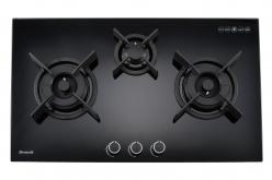 Compare Gas HobTG1493B 90cm tempered glass gas hob with two 4.6kW triple crown burners, one auxiliary burner, cast iron supports, battery ignition, and thermocouple safety device. Product detail
