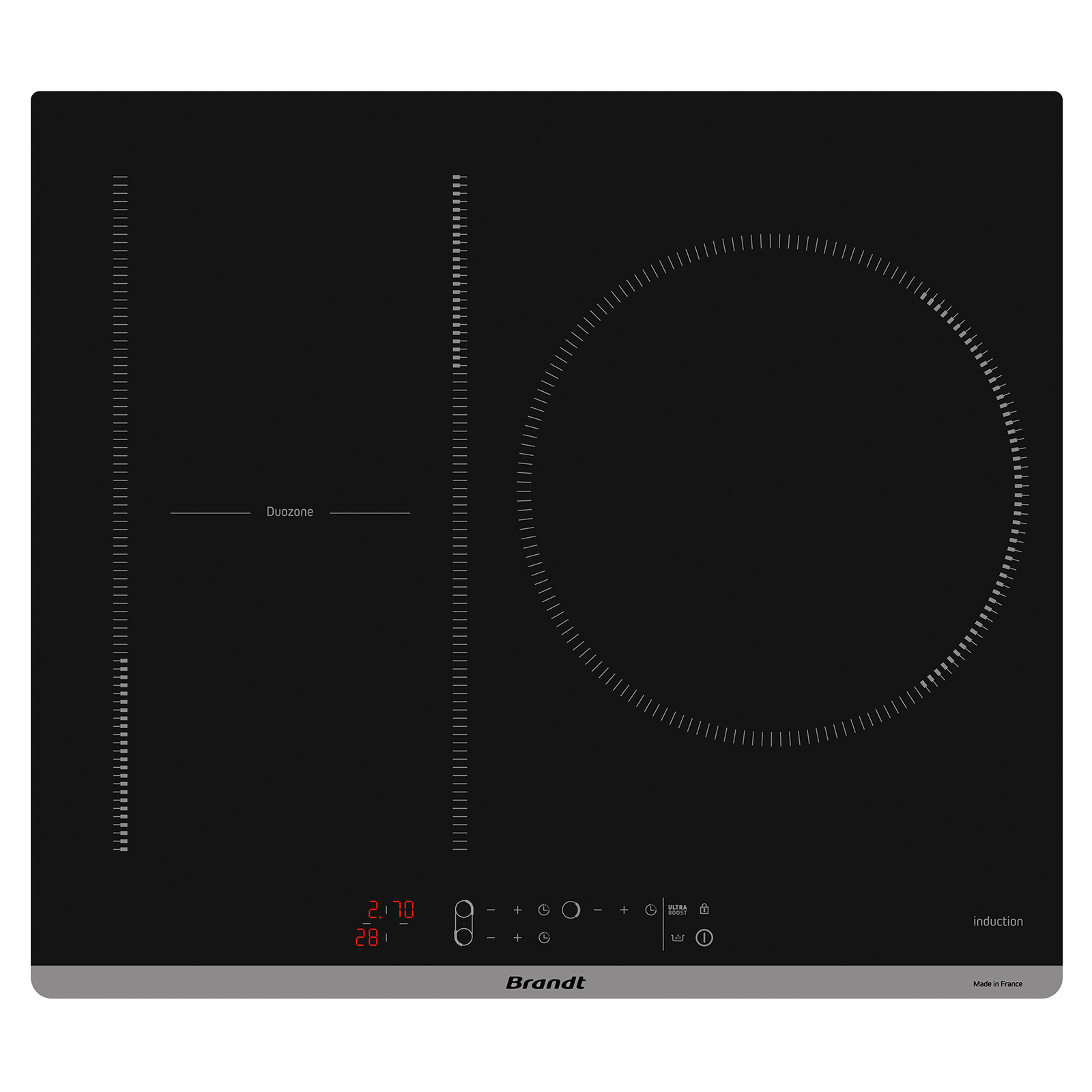 A 60cm 3-zone induction hob with DuoZone technology, 9 power levels plus ultraboost, and an extra-large 28cm zone for versatile cooking.