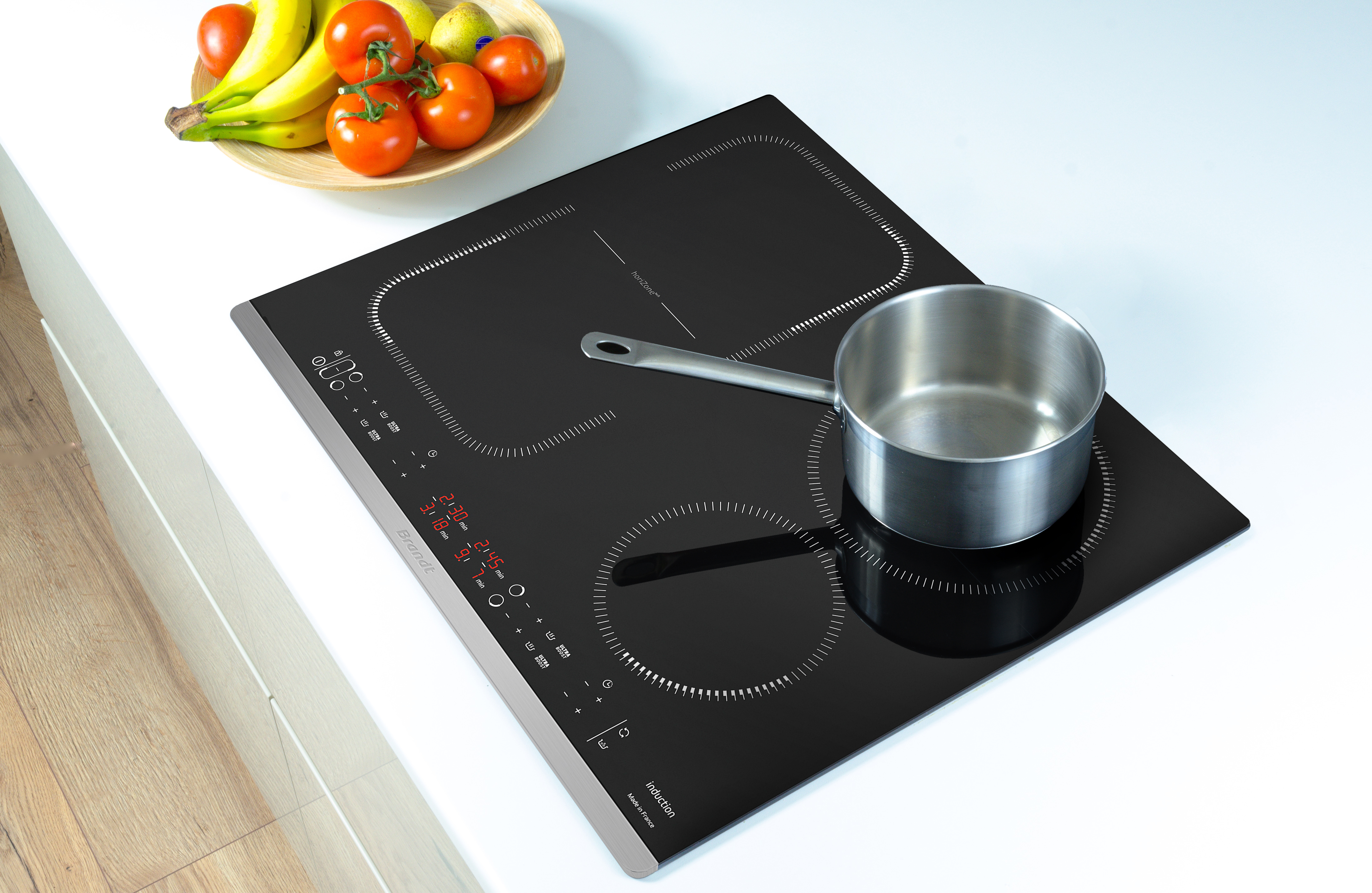 A 60cm 4-zone induction hob with horiZone® technology, allowing zones to be combined at the back, front, or both for versatile cooking arrangements.