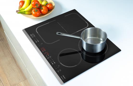 Equipped with 10 safety functions including residual heat indicator, small object safety, anti-overflow, autostop system, keypad lock, and automatic saucepan detection.